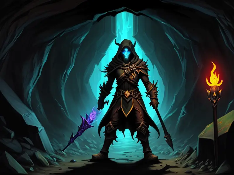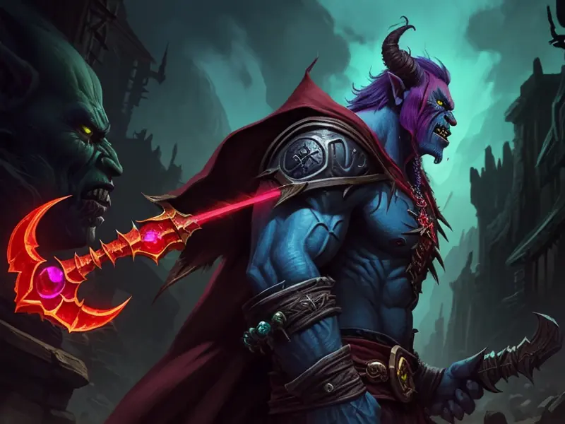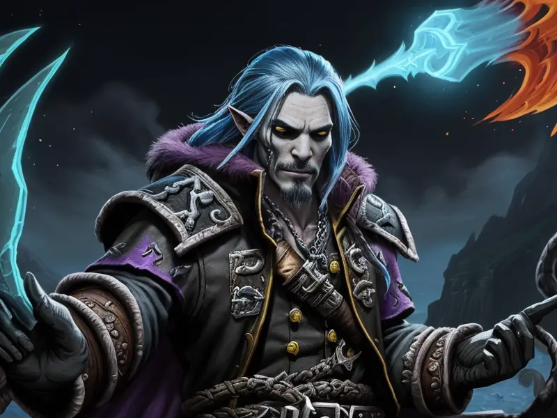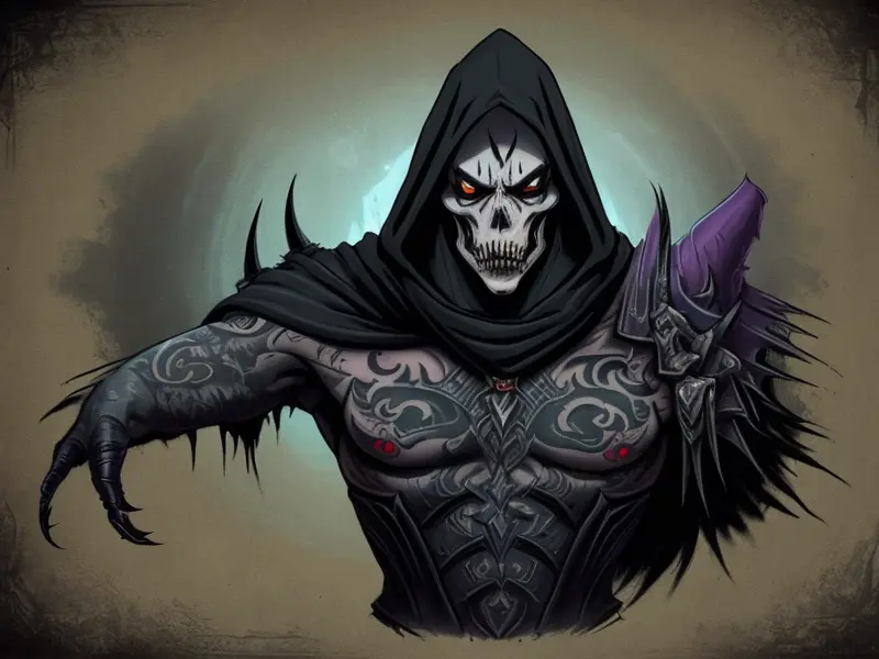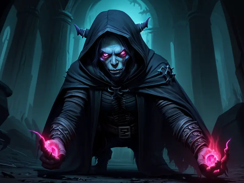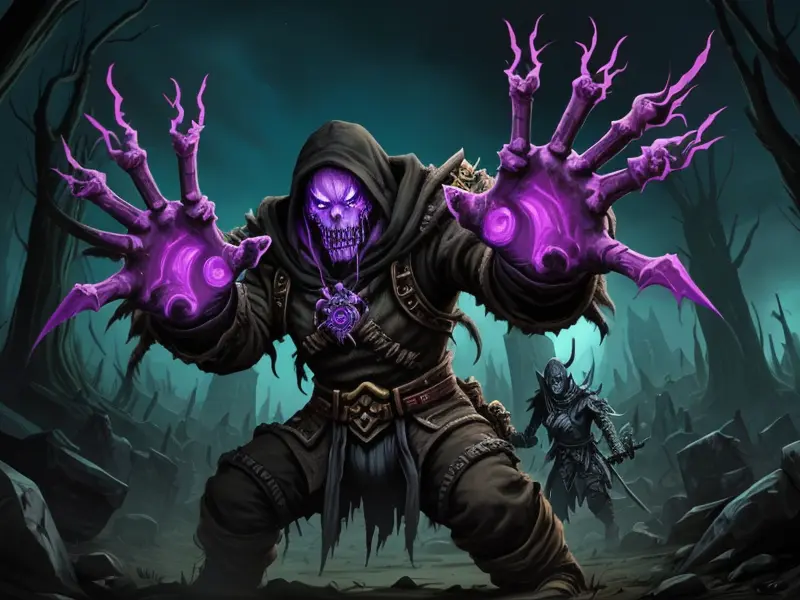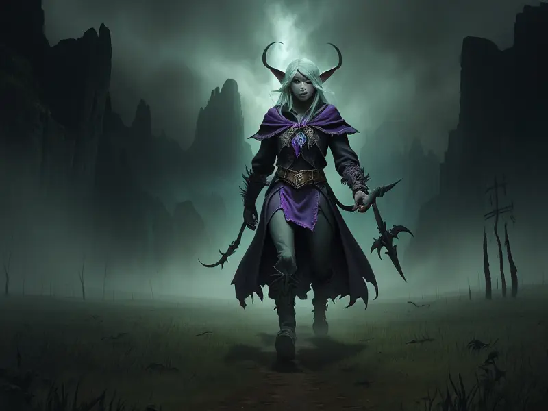 Illustration of Duskwoven Undead, Trickster, Sword dripping with poison, Epic, warcraft style, colorful and fun