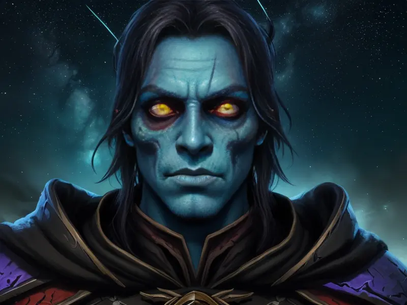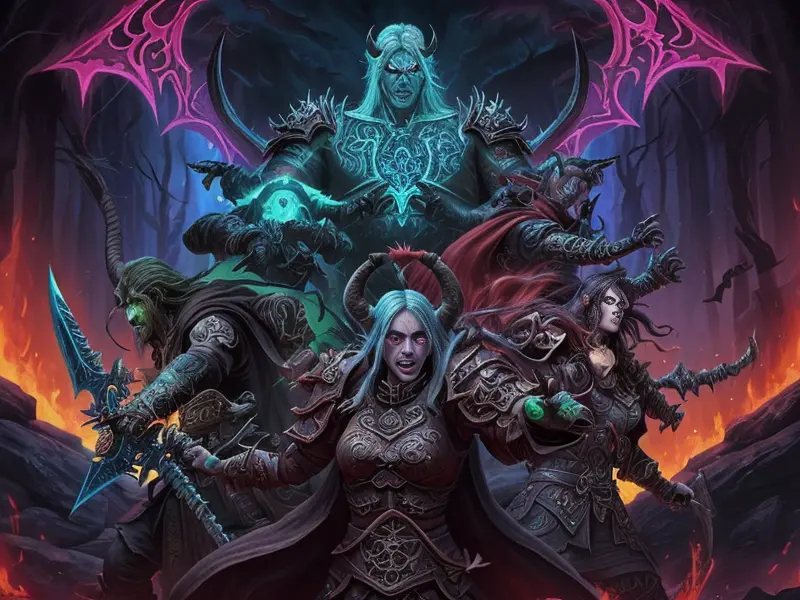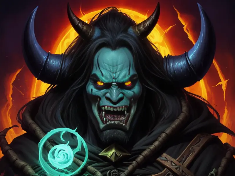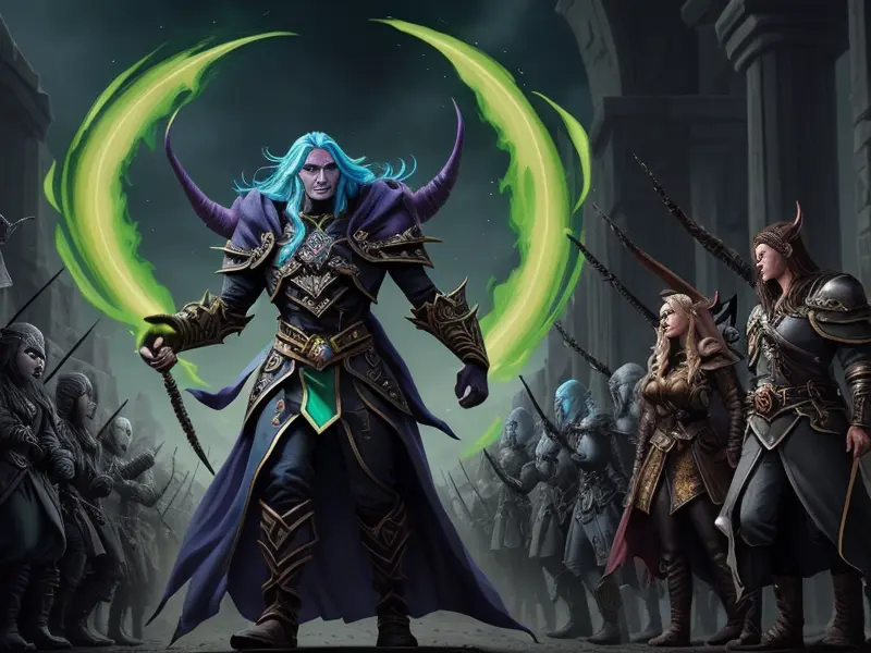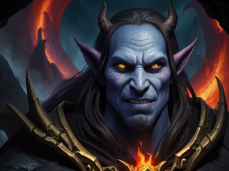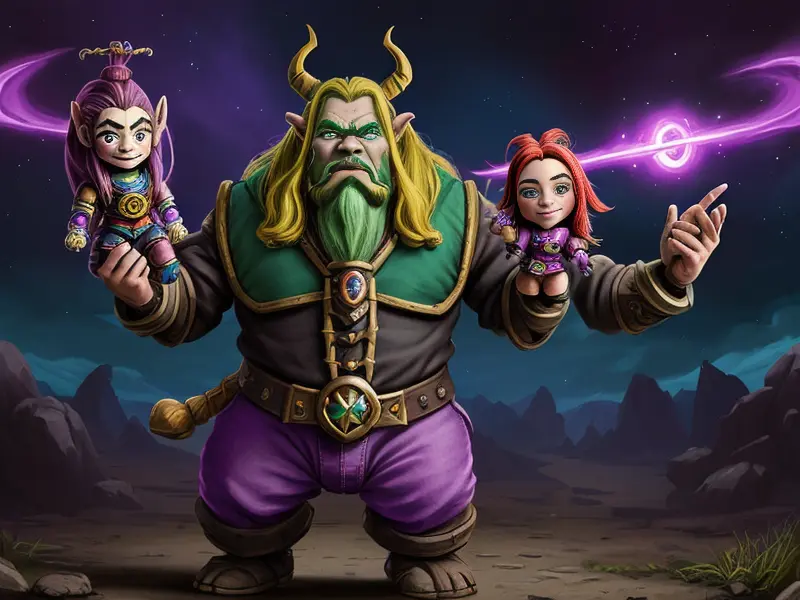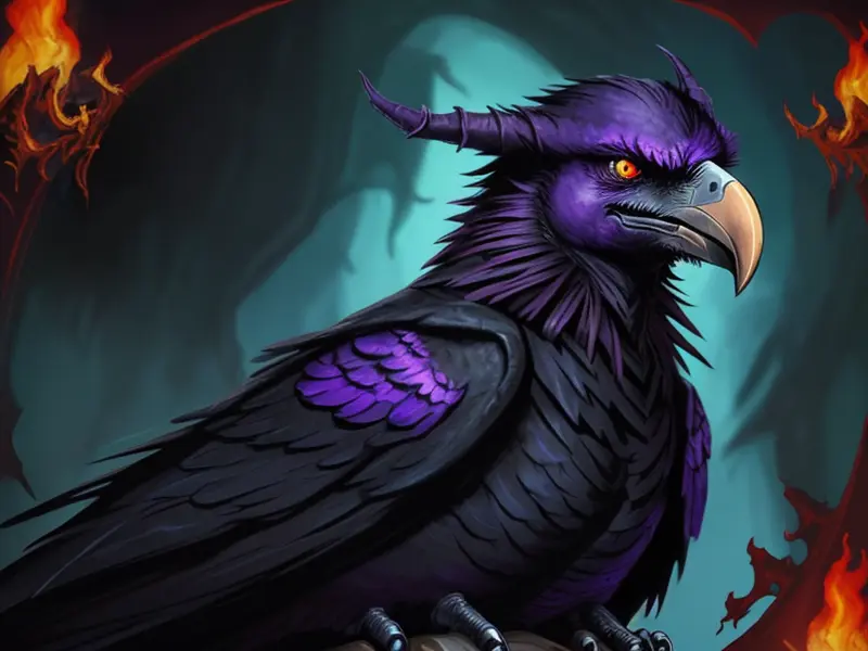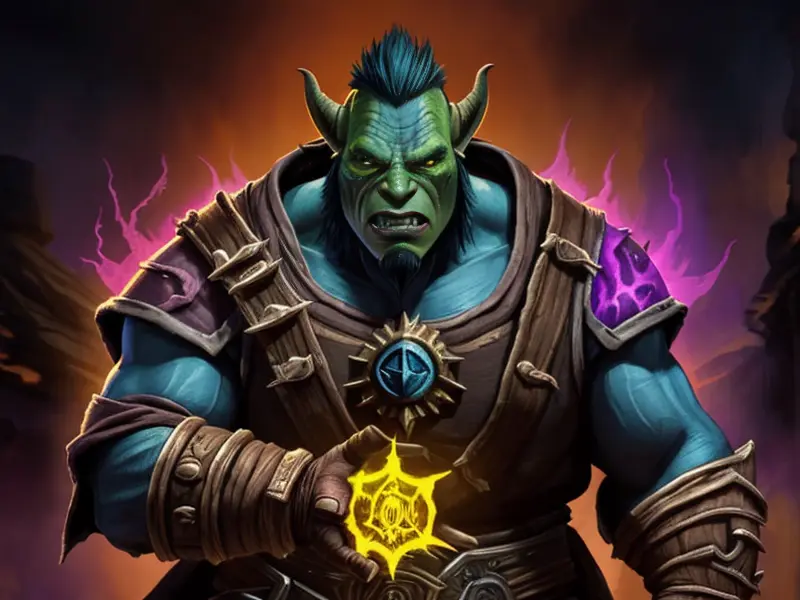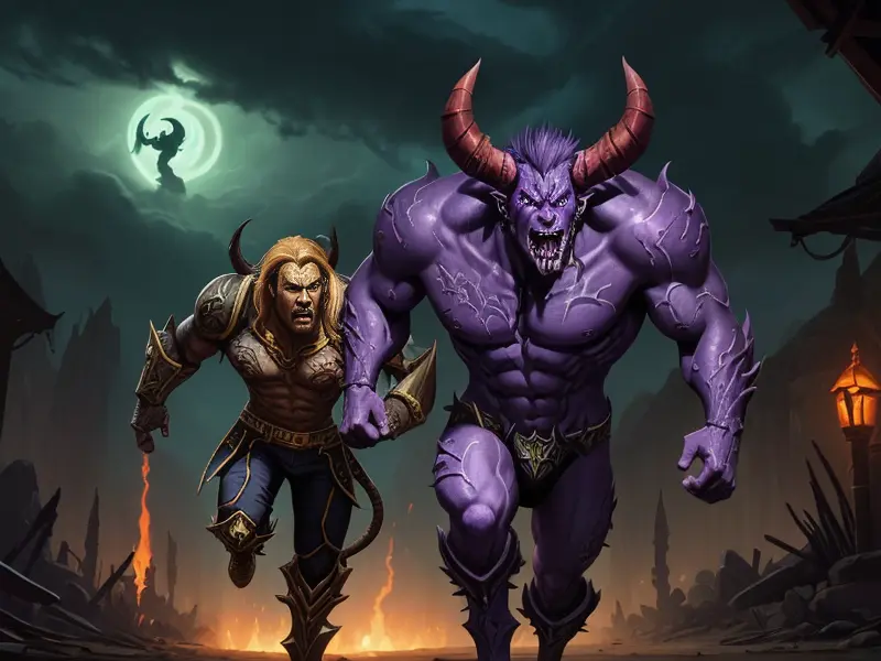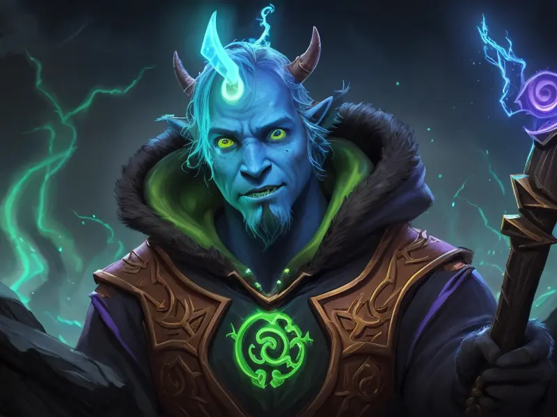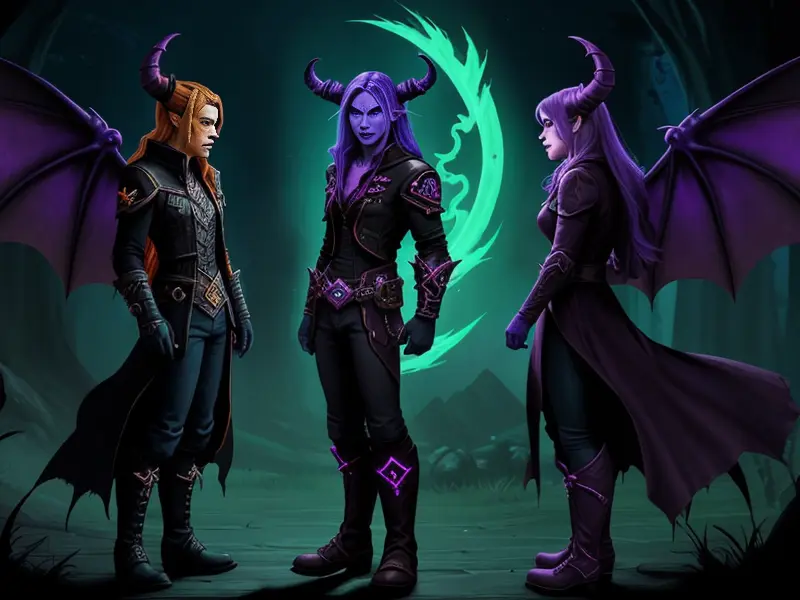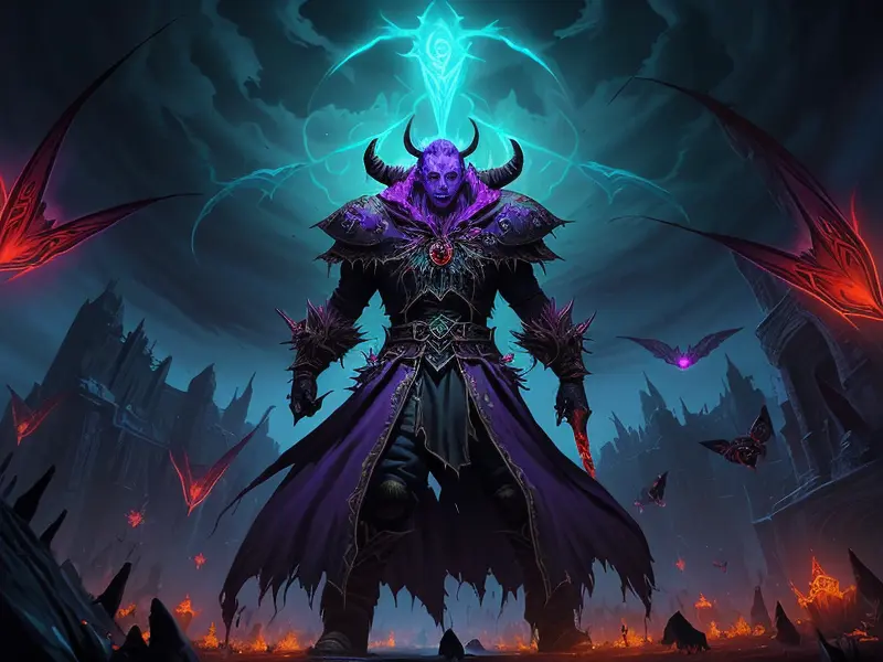 Illustration of Ambitious Demon, Voidwalker, Wears a bracelet that controls shadows, warcraft style, colorful and fun
