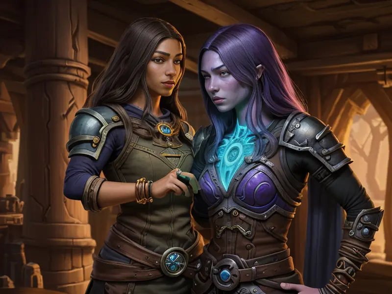 Illustration of Tenacious Human, Artificer, Wears a bracelet that controls shadows, waist-up shot, heroic fantasy human, realistic human face, natural skin tones, normal human anatomy, warcraft style, colorful and fun