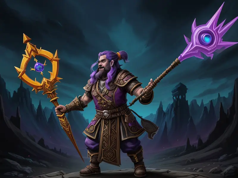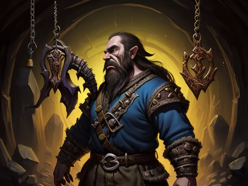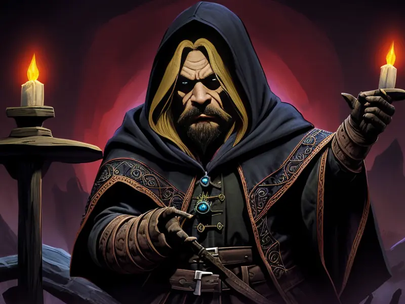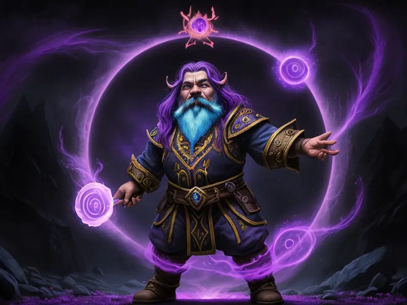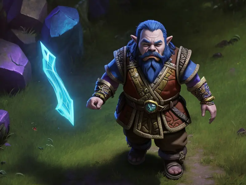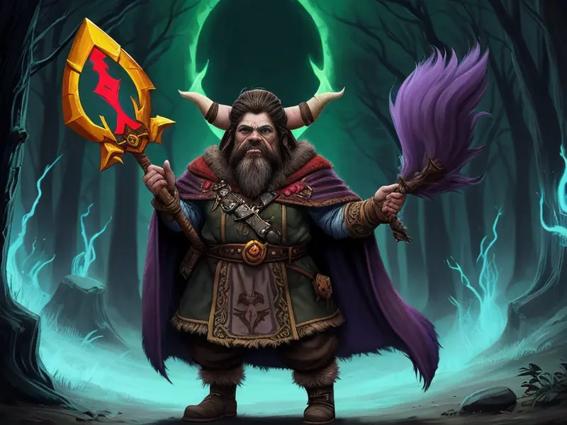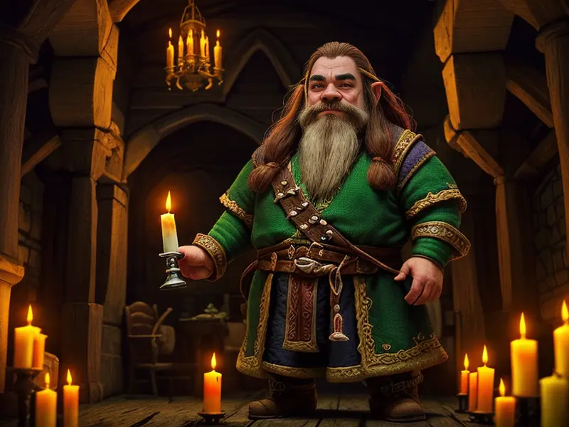 Illustration of Dream-walking Dwarf, Wizard, Wears a bracelet that controls shadows, high angle shot, Robust, warcraft style, colorful and fun