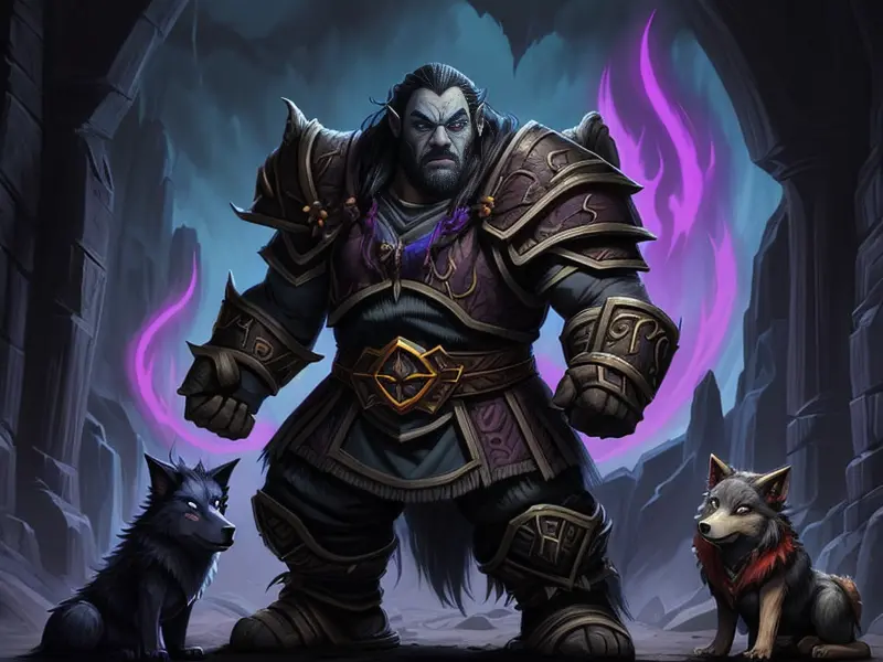 Illustration of Arcane Dwarf, Vampire, A spectral wolf padding silently beside them, Robust, warcraft style, colorful and fun