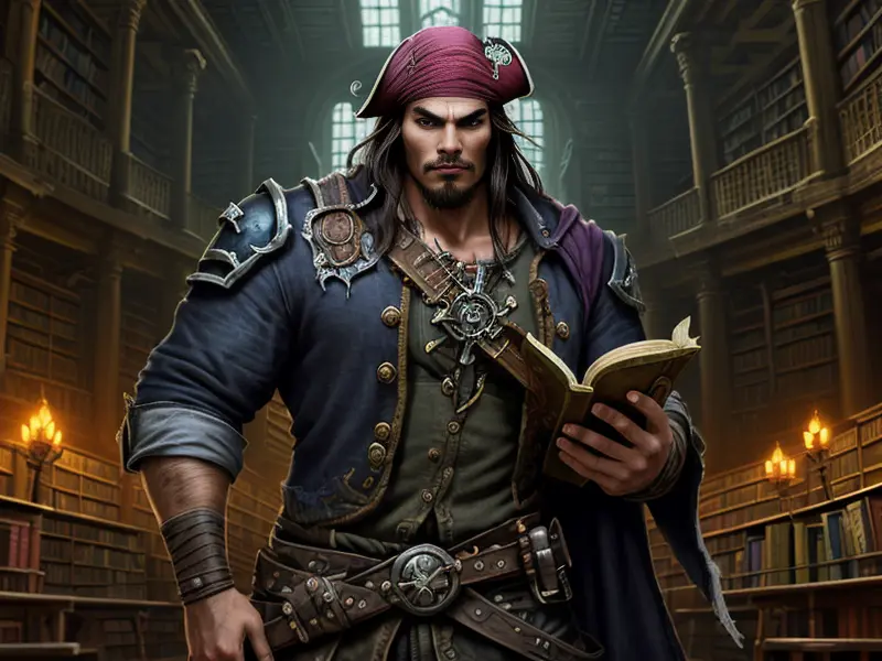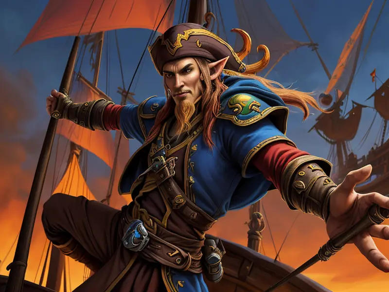 Illustration of Thornbound Elf, Pirate, Wears gloves that enhance magical abilities, medium close-up, Very Rare, warcraft style, colorful and fun