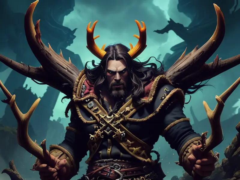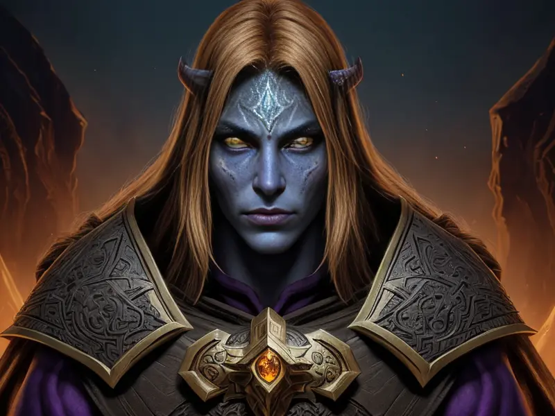 Illustration of Gloomy Demon, Blightbringer, A jagged cloak pin carved from dragon bone, waist-up shot, warcraft style, colorful and fun