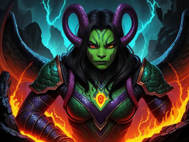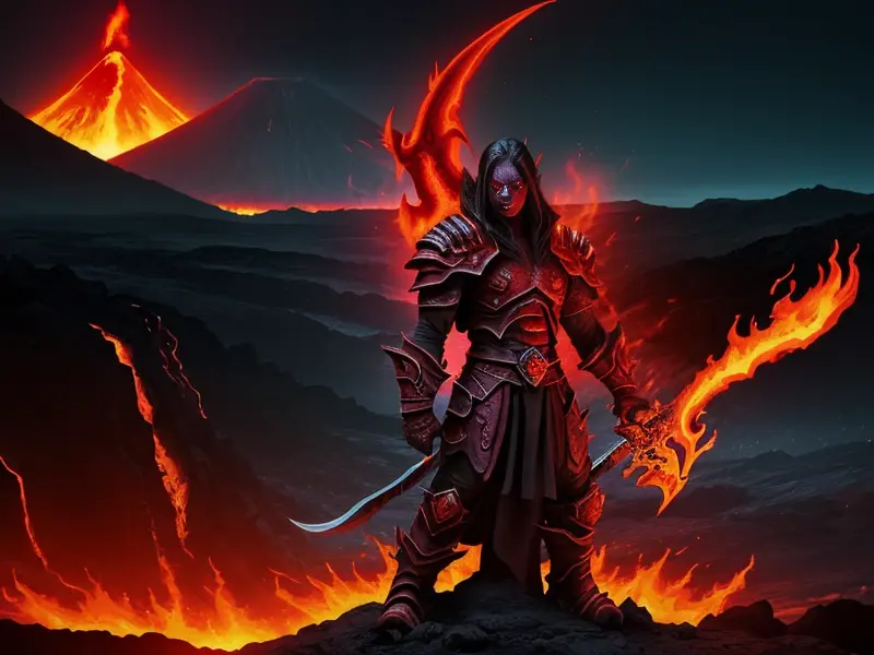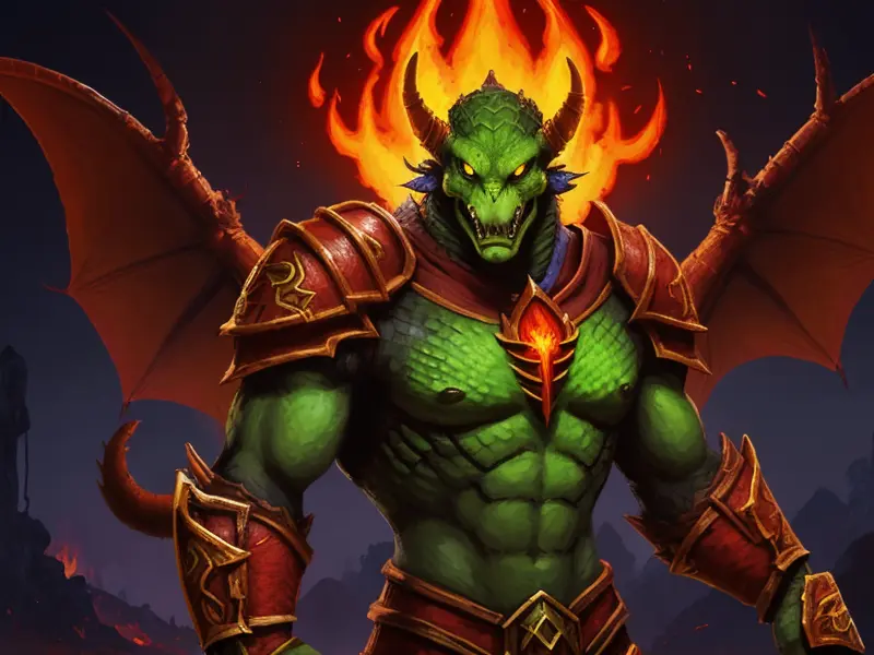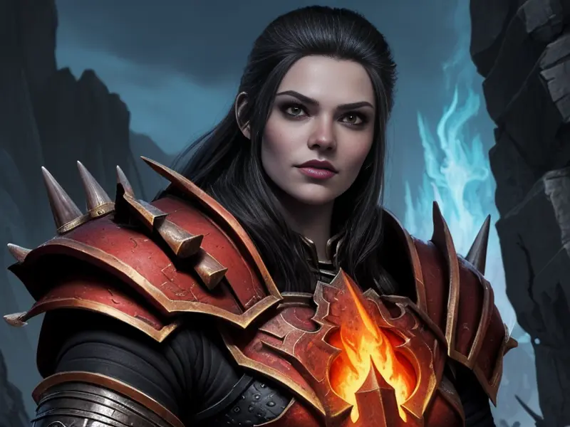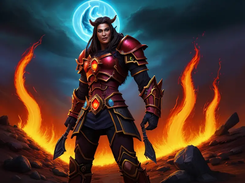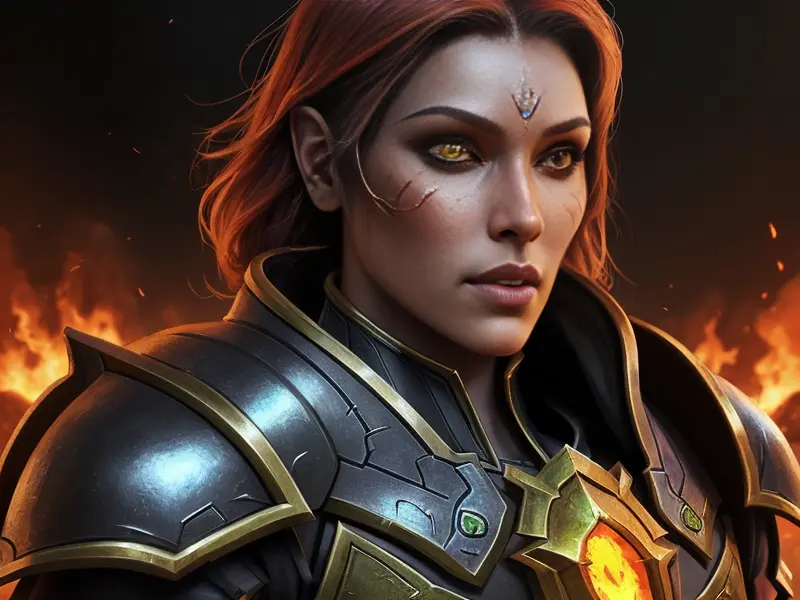 Illustration of Celestial Demon, Druid, A molten core glowing through cracked armor, Very Rare, warcraft style, colorful and fun