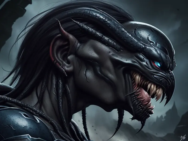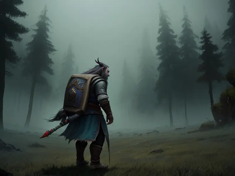 Illustration of Venom-marked Human, Myrmidon, Always followed by a dark mist, side profile, heroic fantasy human, realistic human face, natural skin tones, normal human anatomy, Very Rare, warcraft style, colorful and fun