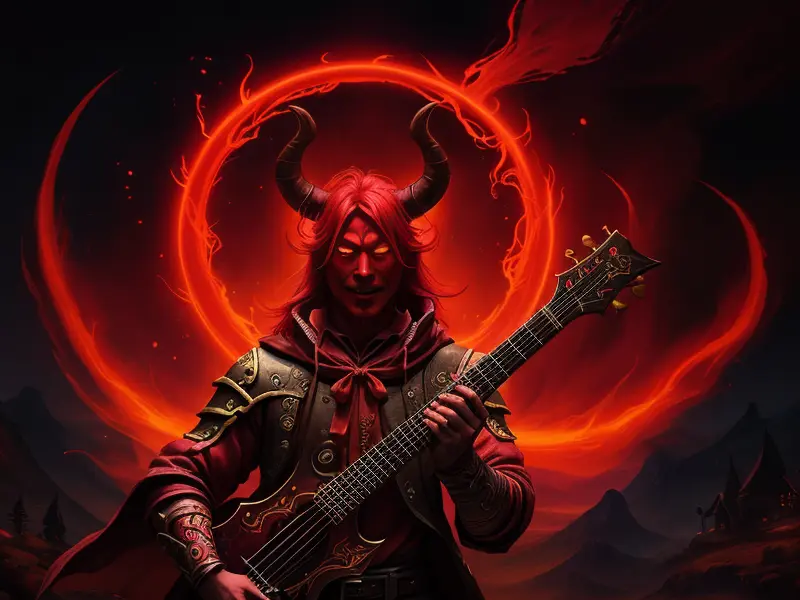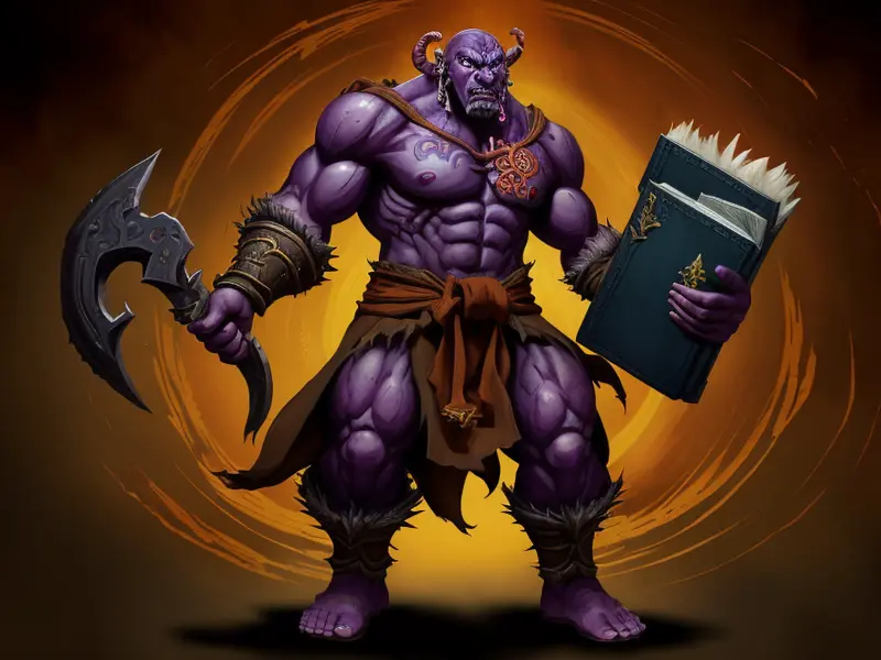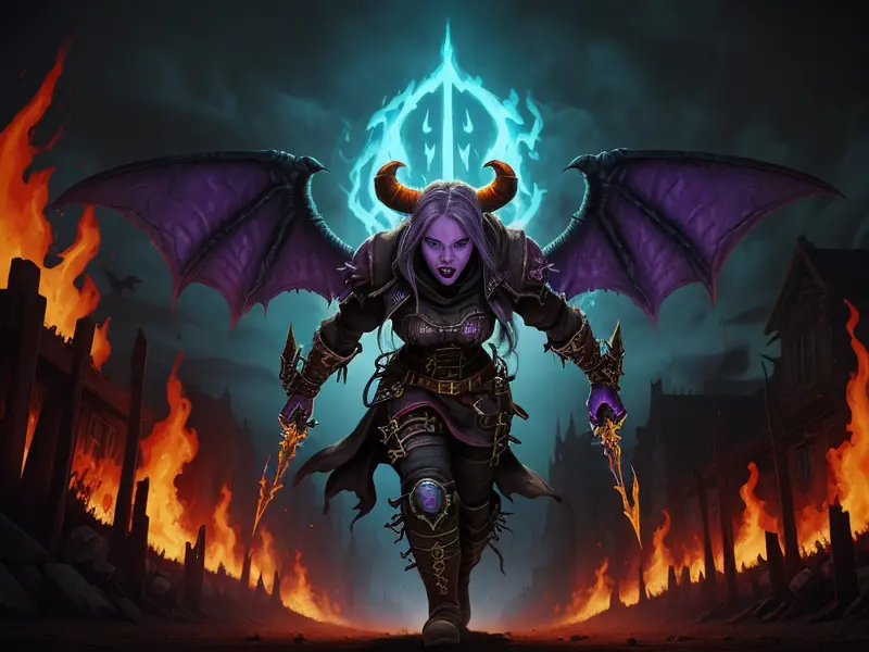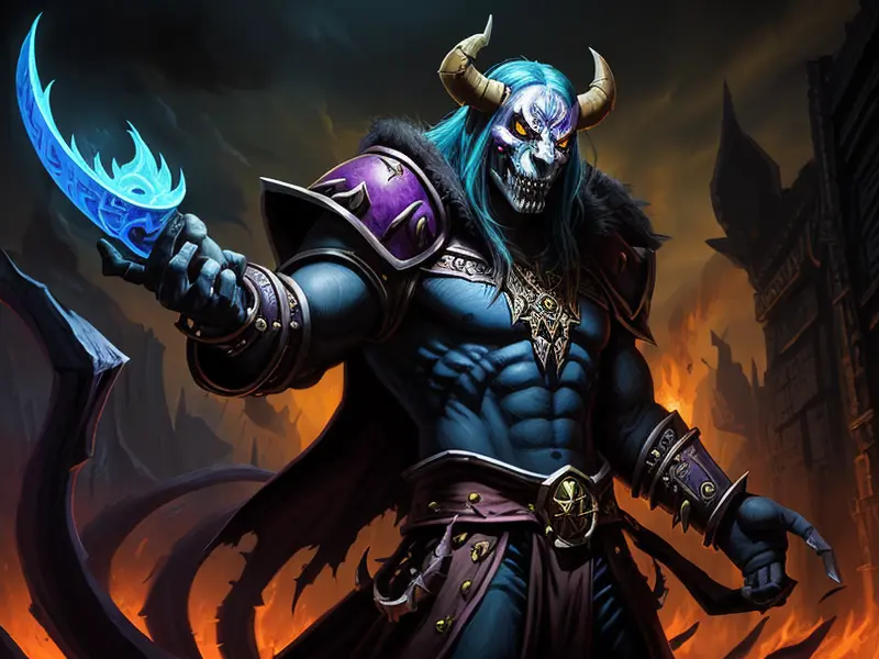 Illustration of Relentless Demon, Spellblade, Tattooed sigils that shift when they breathe, Very Rare, warcraft style, colorful and fun