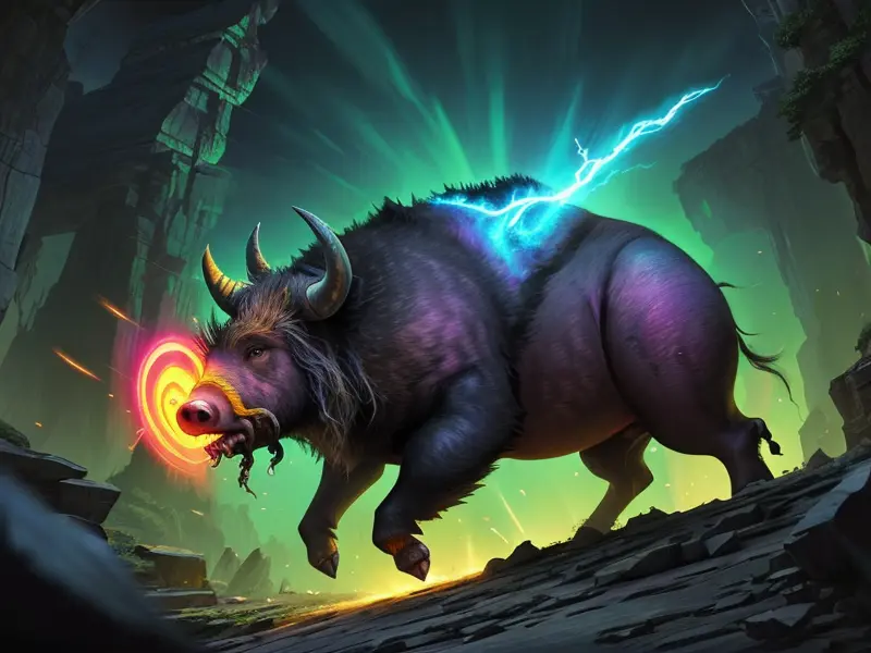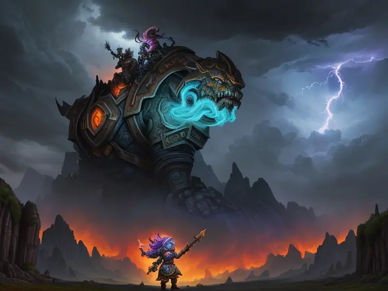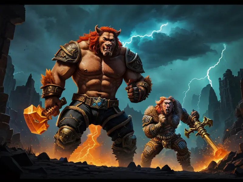 Illustration of Brave Chimera, Heavy hammer crackling with lightning, medium shot, warcraft style, colorful and fun