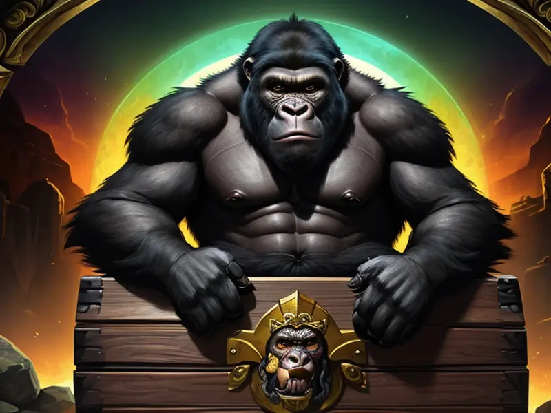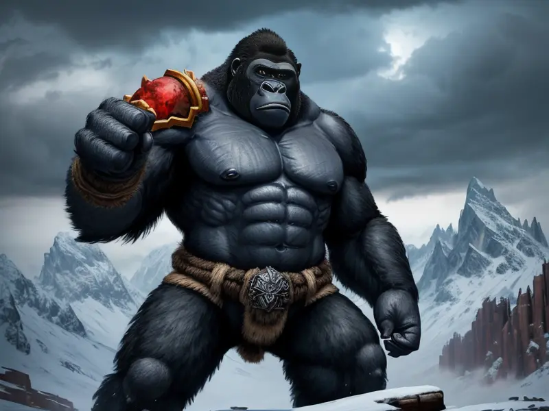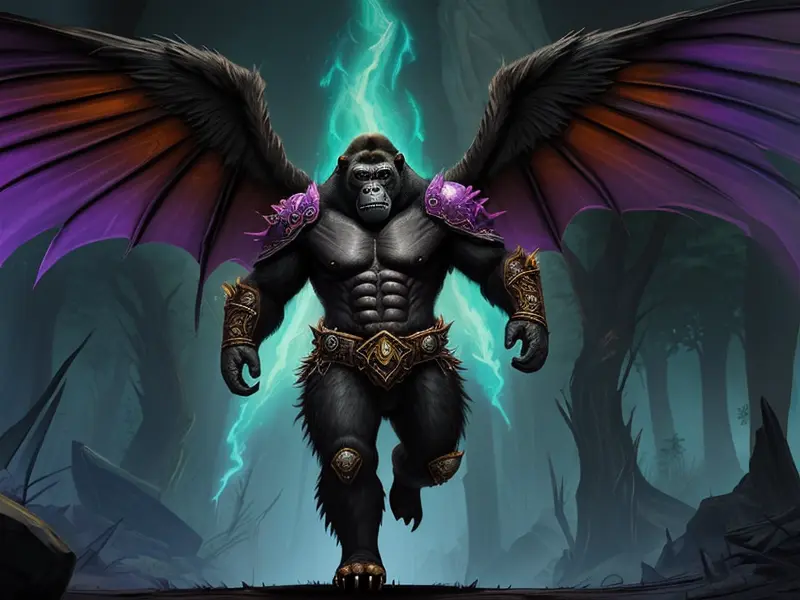 Illustration of Emberborn Gorilla, Wings of charred leather unfurled, Very Rare, warcraft style, colorful and fun