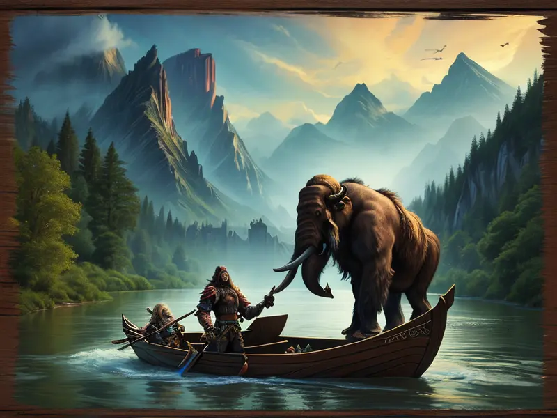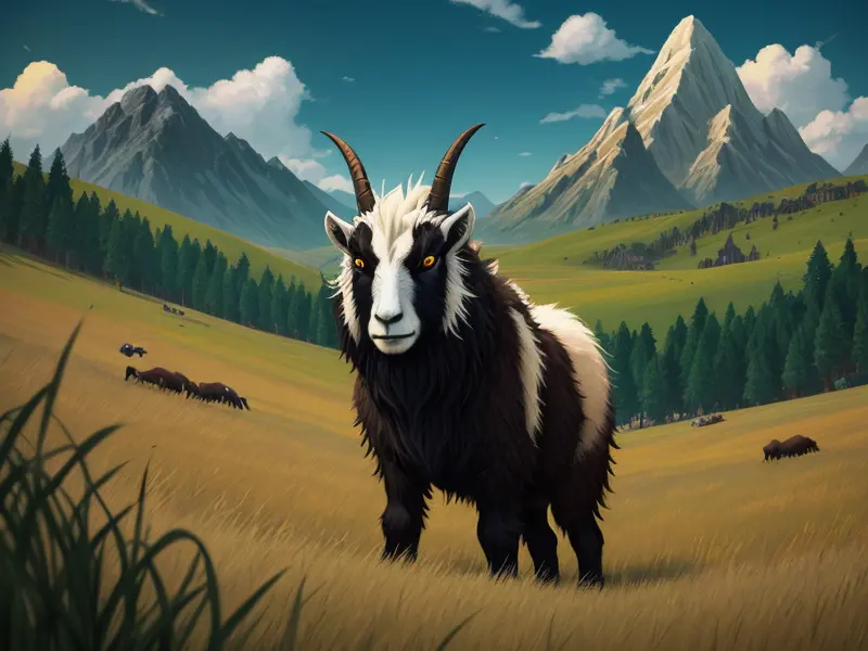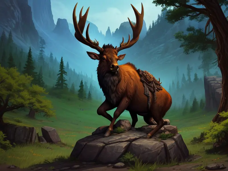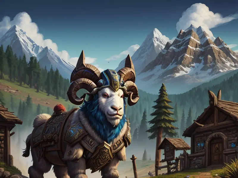 Illustration of Stoic Ram, Helmet forged with mountain motifs, warcraft style, colorful and fun