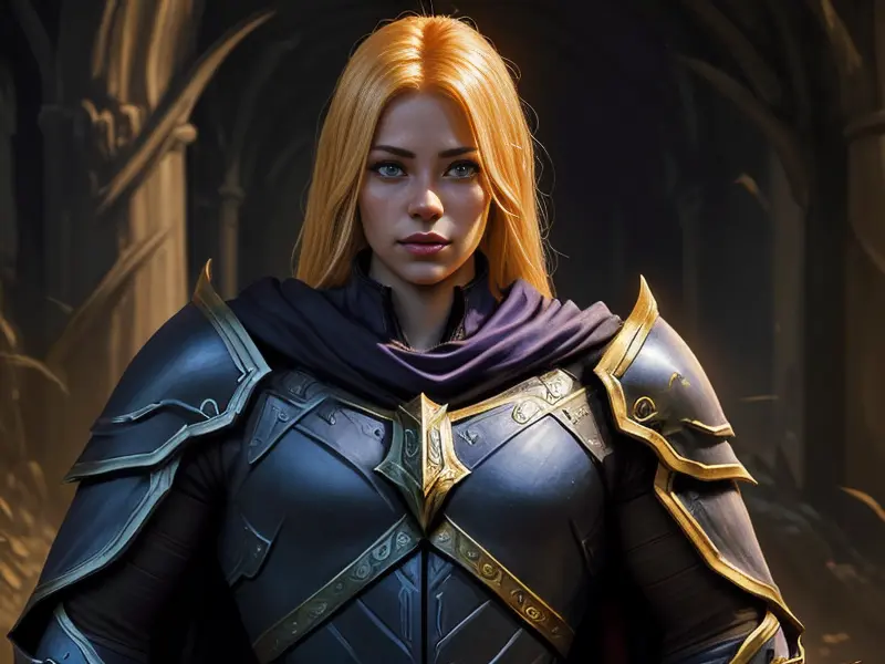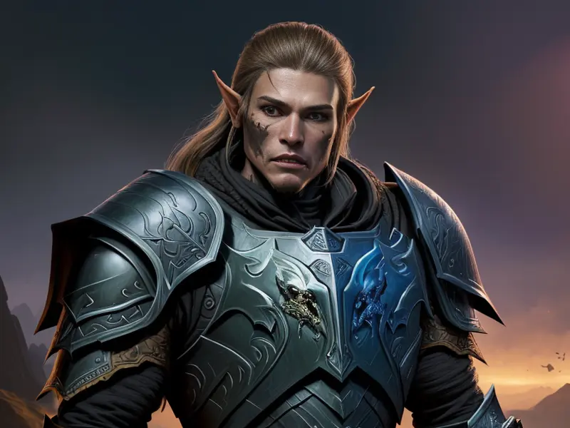 Illustration of Stealthy Human, Paladin, Armor adorned with dragon skulls, shoulder-level shot, heroic fantasy human, realistic human face, natural skin tones, normal human anatomy, warcraft style, colorful and fun