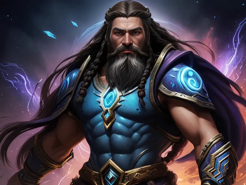 Illustration of Savage Water Elemental, Spiritwalker, A shield engraved with a star map, dynamic angle, warcraft style, colorful and fun