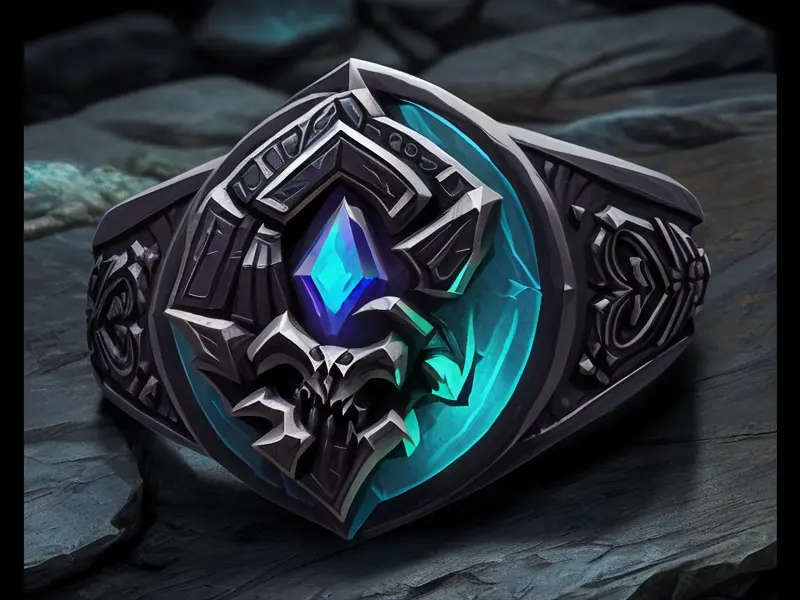 Illustration of Stonebound Undead, Paladin, Obsidian ring engraved with symbols, side profile, Very Rare, warcraft style, colorful and fun