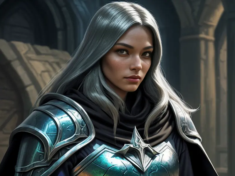 Illustration of Stealthy Human, Cleric, Wears a cloak of shimmering silver, waist-up shot, heroic fantasy human, realistic human face, natural skin tones, normal human anatomy, Very Rare, warcraft style, colorful and fun
