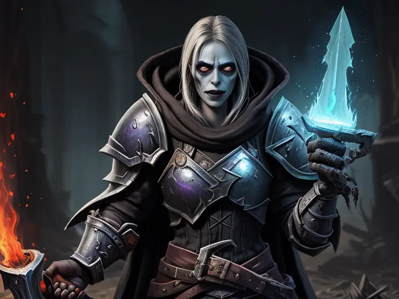 Illustration of Frostborn Undead, Warrior, A cape trailing motes of glowing ash, Very Rare, warcraft style, colorful and fun