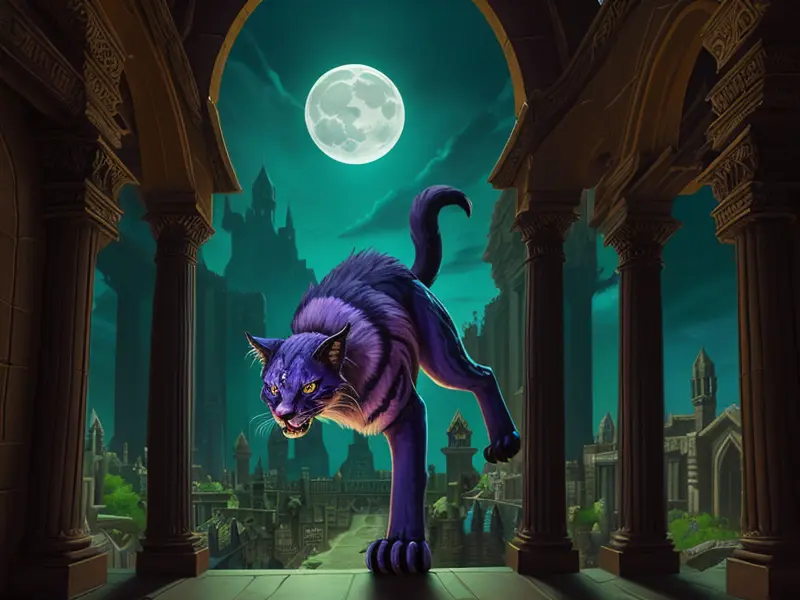 Illustration of Vicious Puma, In a palace made of glass and moonlight, warcraft style, colorful and fun