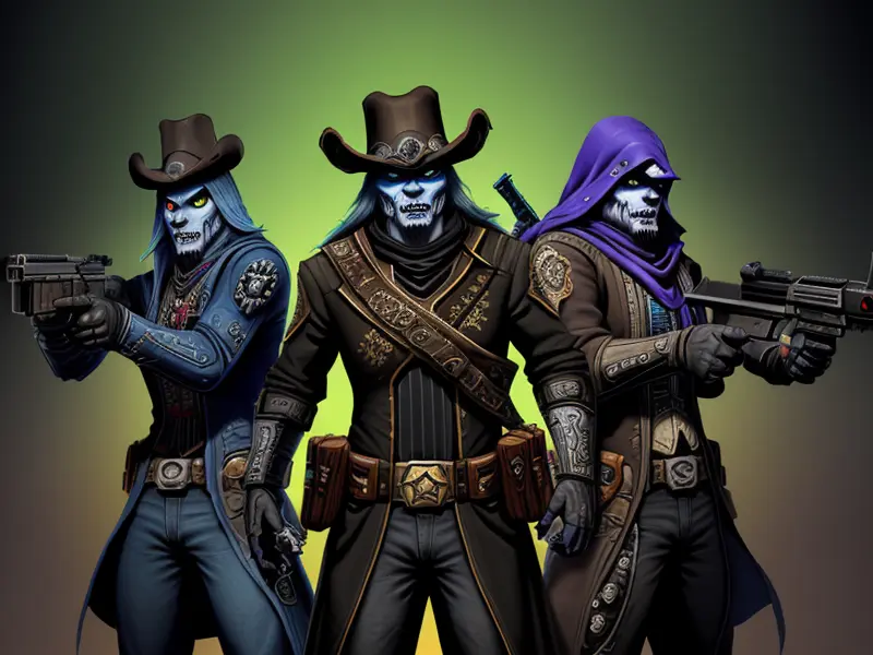 Illustration of Duskwoven Undead, Gunslinger, Pistol drawn, ready to shoot, warcraft style, colorful and fun